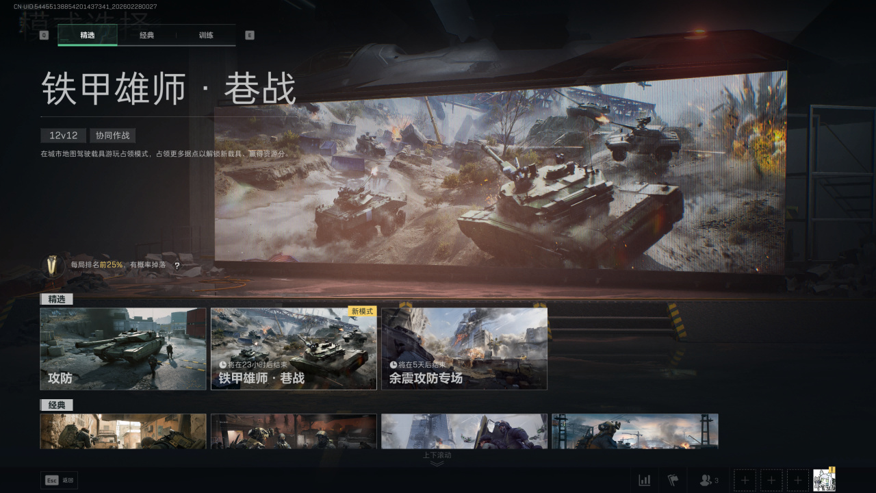 在全面战场任意模式游玩一局