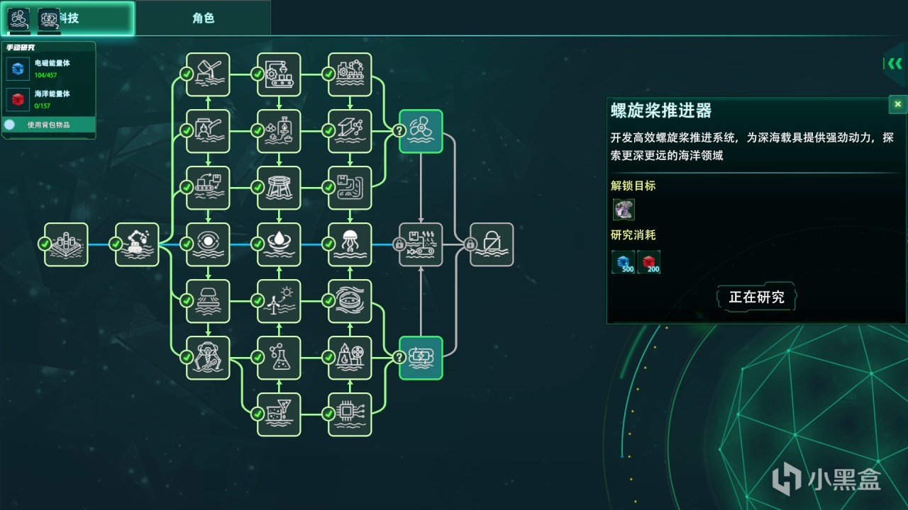 除了我们个人的天赋树系统以外,我们还有一条科研路线。通过收集各种物质来进行科研,可以解锁更多的设备制造图纸。从最开始的采矿冶炼,后面我们还可以提取石油,通过化工厂来分离石油进行塑料提炼。