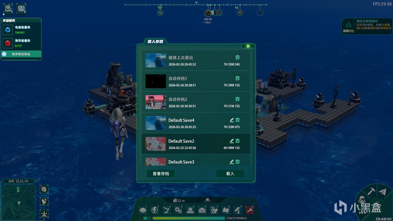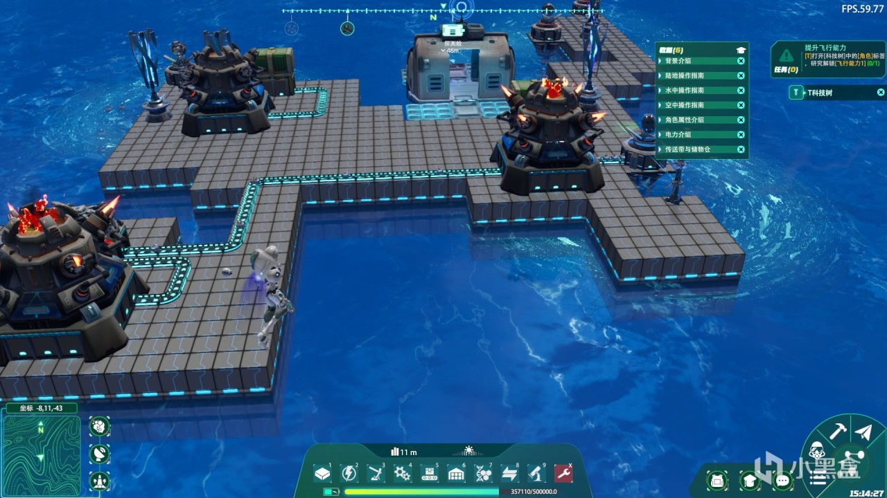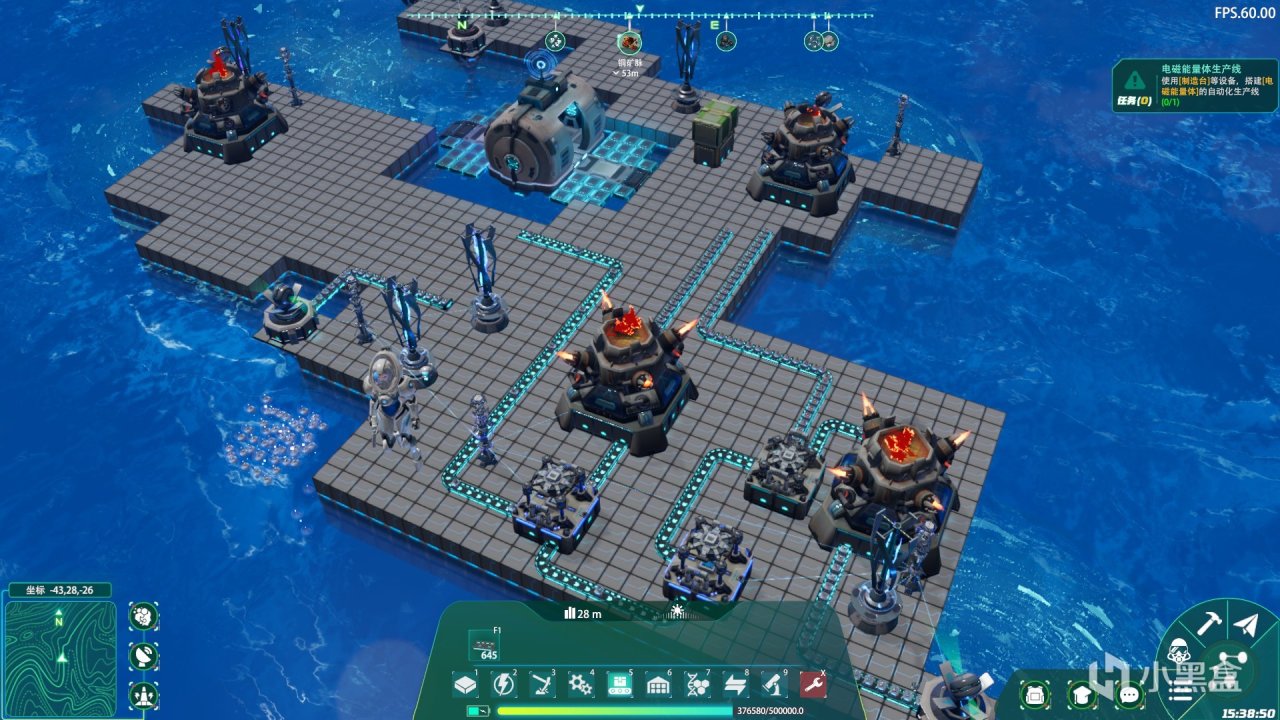 来到建造方面,要想在水上立足最重要的就是浮桥,毕竟设施需要建立在坚固的平面上。一开始我们探索还是海上,随着探索和科研程度的增加,我们可以对海下进行更加细致的探索。我们还可以运用萃取装置和电磁弹射来把海里面的植物运输到岸上,进一步的增加生产运输线。