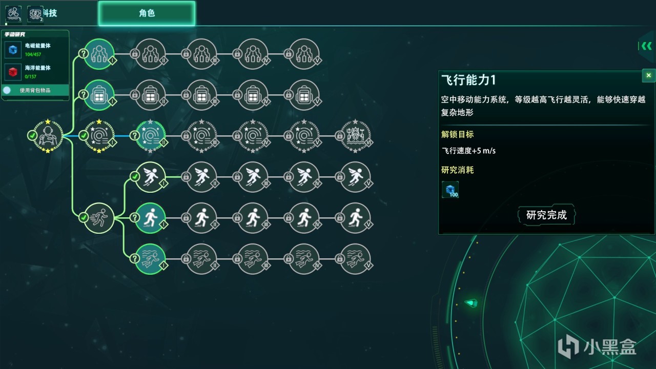 作为宇航员,我们的宇航服自然是有许多黑科技。最开始我们需要制作电池给我们的宇航服供电,最开始的潜水只是基本功能。后期我们解锁飞行模块就可以直接进行飞行,我们也有类似的天赋树系统。可以对我们的移动速度进行增加、背包进行扩容、或者是飞行速度加成之类的。