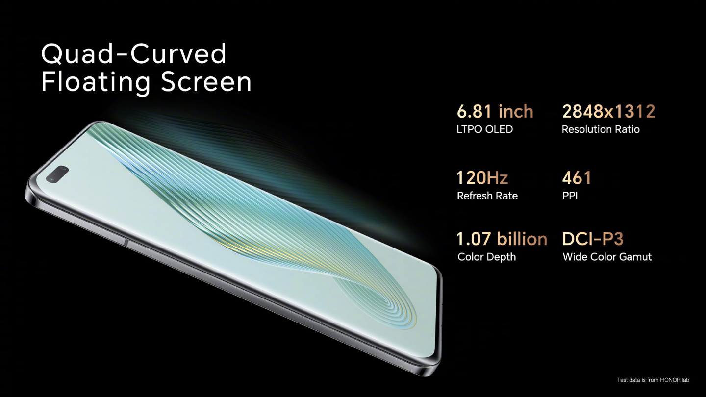屏幕方面,荣耀 Magic5 Pro 搭载京东方 6.81 英寸 120Hz OLED 屏幕,全局峰值亮度 1300nit,局部峰值亮度 1800nit,Delta E 约等于 0.27,最高支持 2160Hz 高频 PWM 调光。同时,荣耀 Magic5 Pro 的屏幕获得 DXOMARK 屏幕总分第一名和首款莱茵节律友好认证的手机,支持双亮度色彩校准技术,第二代聚光技术显著提升屏幕亮度,强光下依然清晰。搭载独立显示芯片,大幅提升 HDR 视频和运动视频的观看效果。