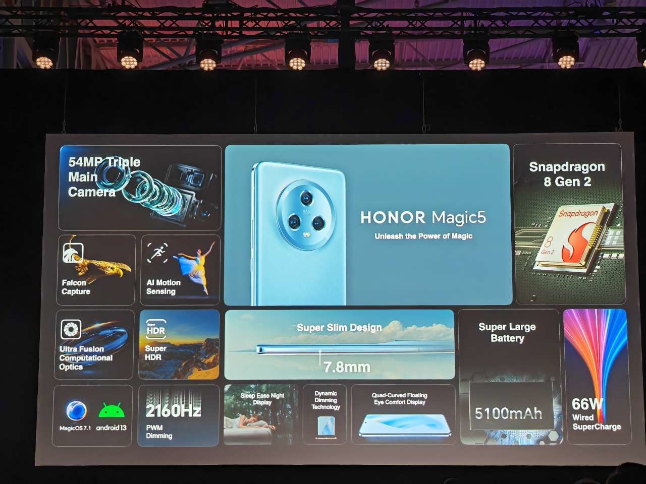 荣耀在 MWC2023 举行了 Magic5 系列全球发布会,会上正式发布了 Magic5 和 Magic5 Pro 两款手机。