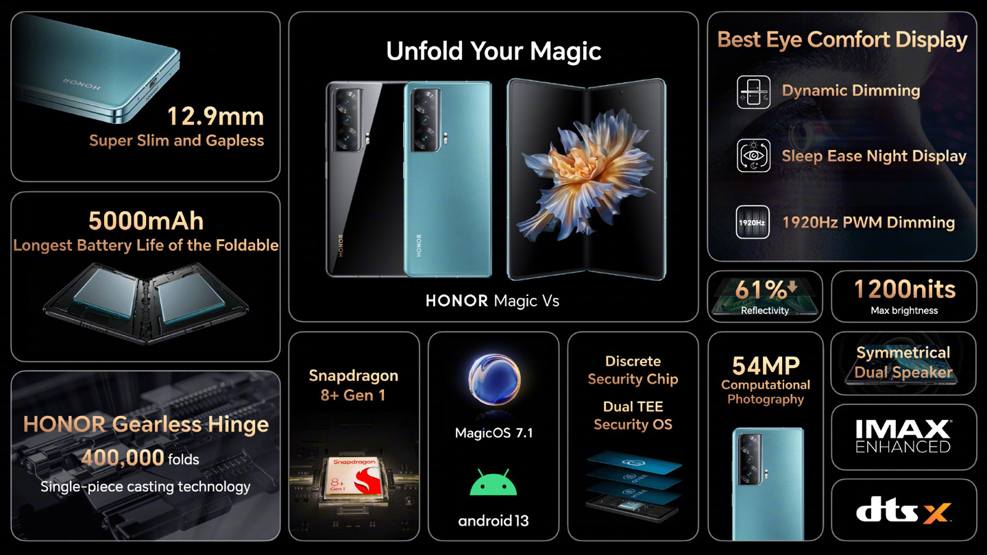 此外,荣耀 Magic Vs 也亮相巴展,12 GB RAM + 512 GB 版本海外售价 1599 欧元(IT之家备注:当前约 11753 元人民币)。