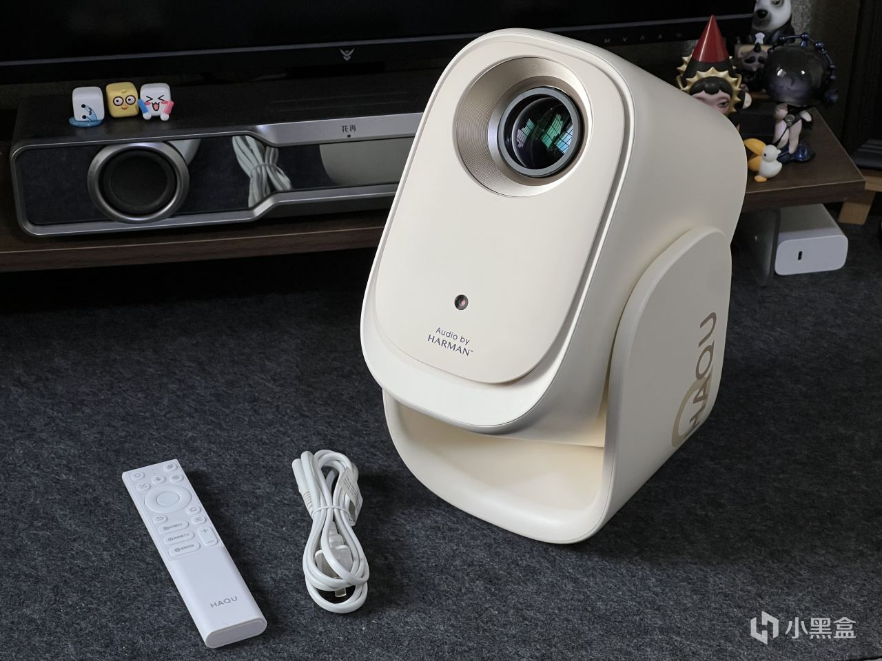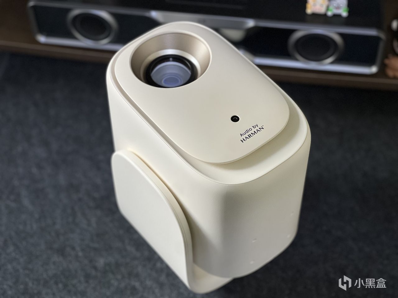 取出投影仪,外形上Q1ProMax也可以理解为Q1Pro的放大版,如果说Q1Pro小巧的机身更适合独居党或宿舍党在不用的时候方便收纳,那ProMax相对来说就更适合固定使用一点,比如像我一样摆在客厅。