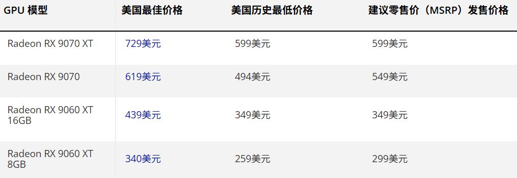 同为市场主要参与者的AMD,其搭载RDNA 4架构的RX系列也未能完全规避涨价趋势,但幅度相对可控。RX 9070 XT价格上浮约17%,RX 9070则上涨约15%,整体波动较为温和