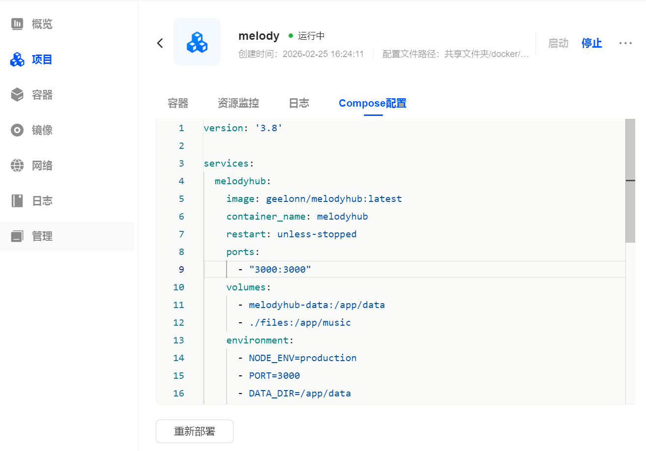 项目的部署也并不难,作者已经提供了完整的Compose文件,我们只需要复制到自己的NAS中部署即可。