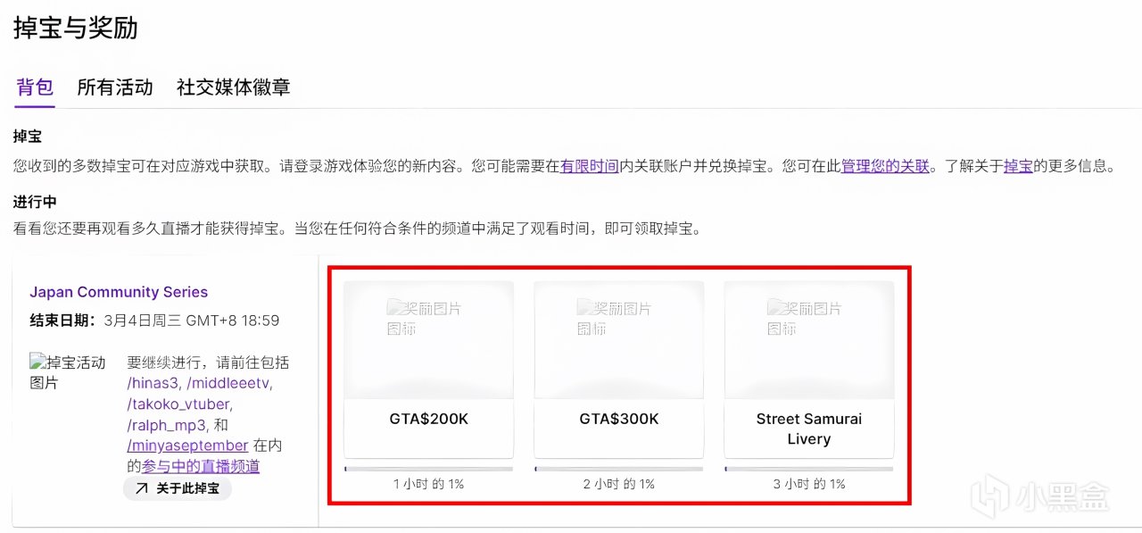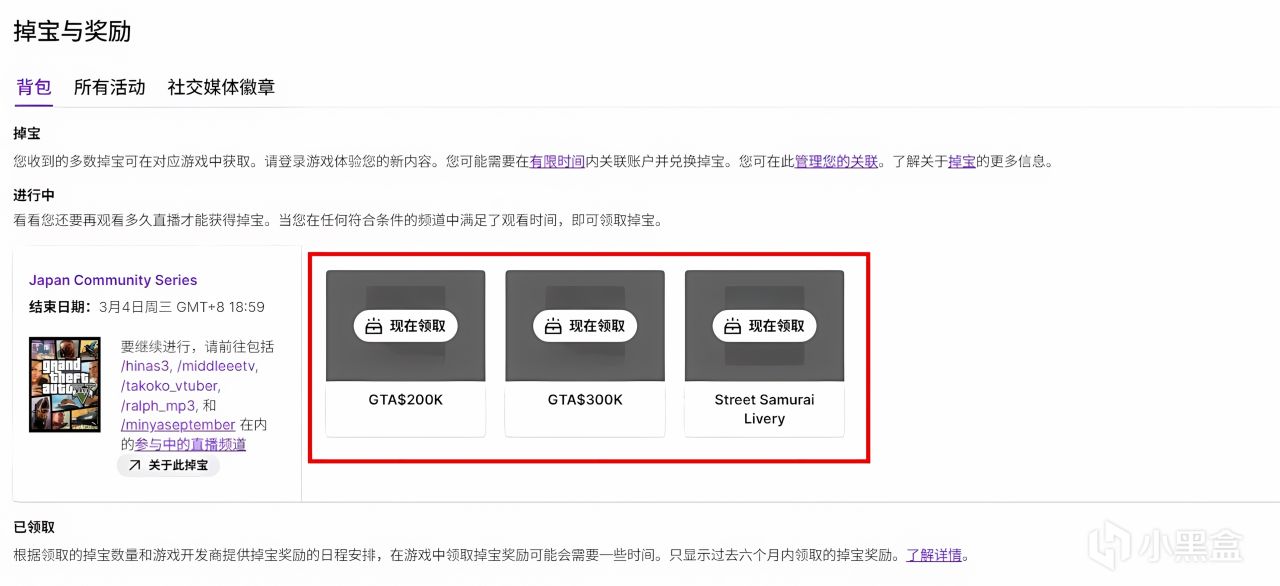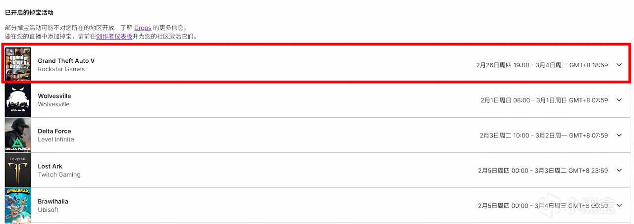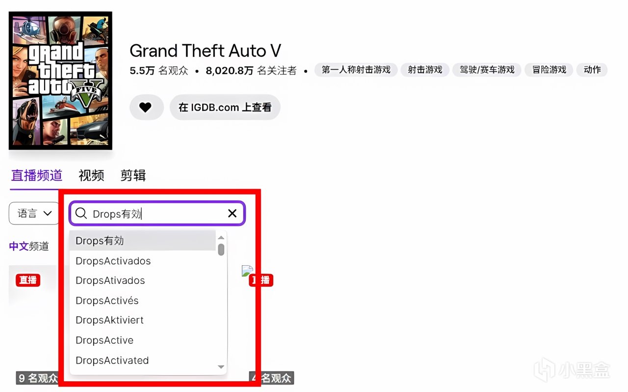 前往TWITCH(老鼠台)直播平台,观看指定《Grand Theft Auto V》游戏板块,带有“Drops有効”的直播标记的直播间。