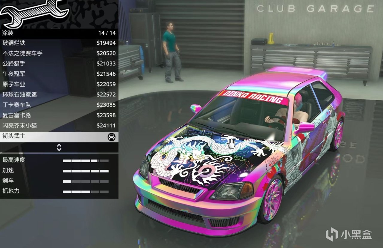 如果实在不想花3个小时挂机,但又很想要“街头武士”涂装也没关系,这个涂装可以在洛圣都车友会复制其他玩家的,仅需花费30-40万即可复制一辆带“街头武士”涂装的[丁卡 旅行家羽黑]