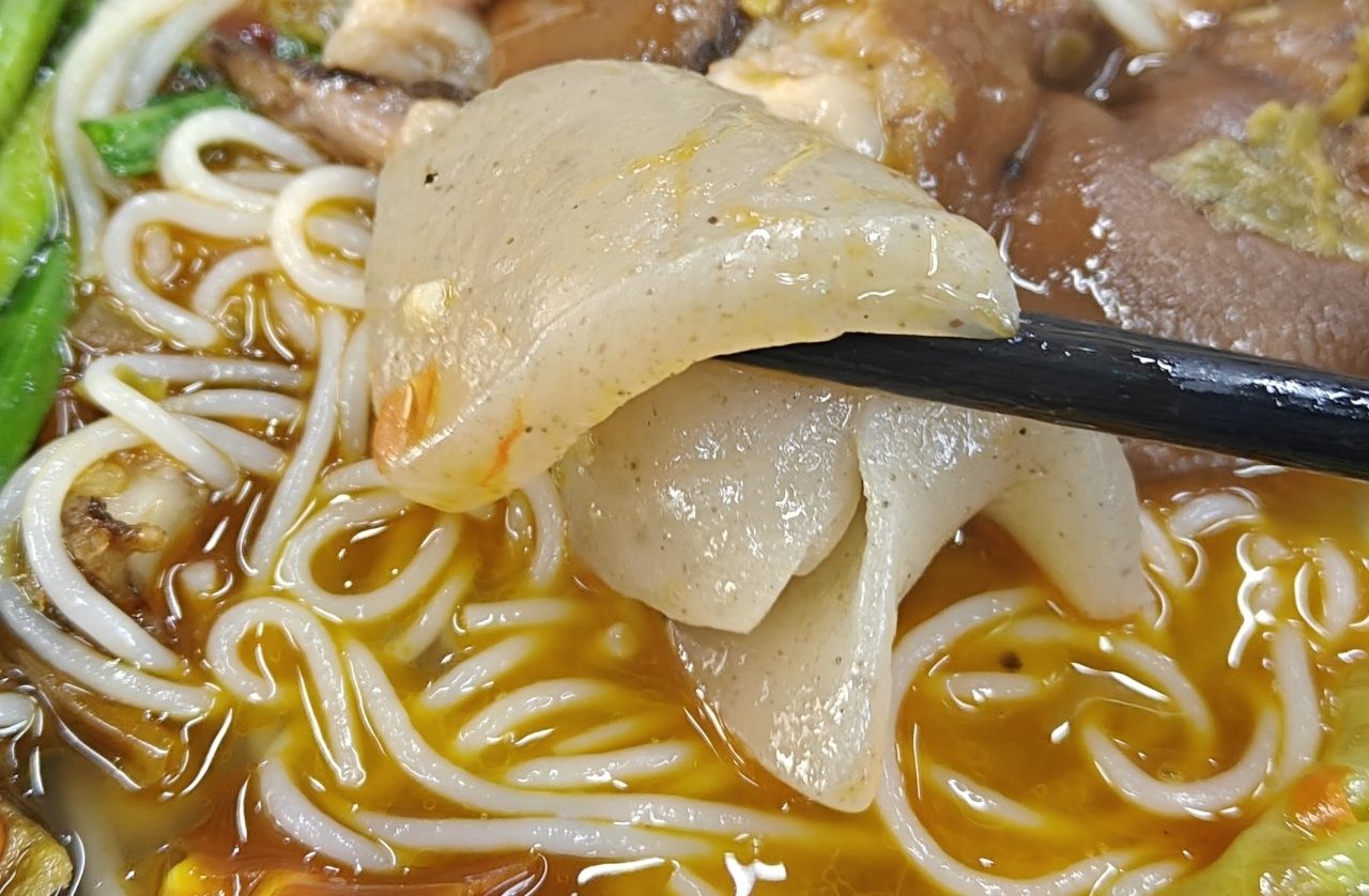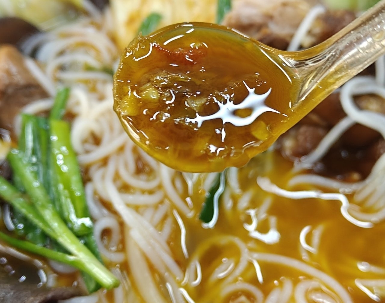 米线是胶质感比较强的细米线,很挂味。碗里的配菜也不少,有魔芋、豆芽、油豆皮、白菜,加上我选的木耳和出锅时撒的一把生韭菜。其中魔芋很好吃,完全去掉了魔芋腥气,又特别入味,是提前就和泡椒一起炒过。木耳吃起来嘎吱嘎吱的,是很脆的毛木耳。