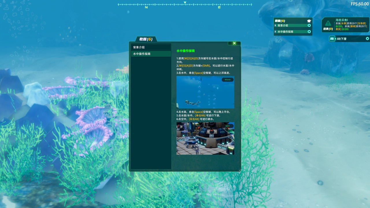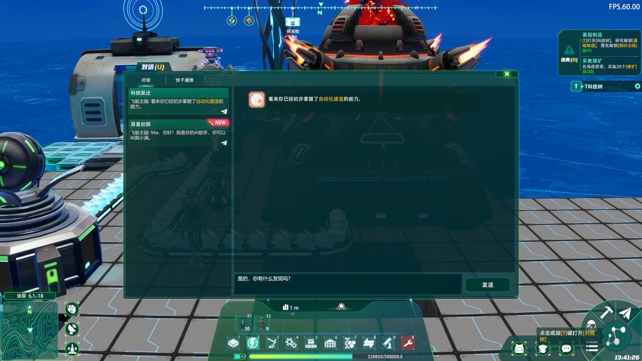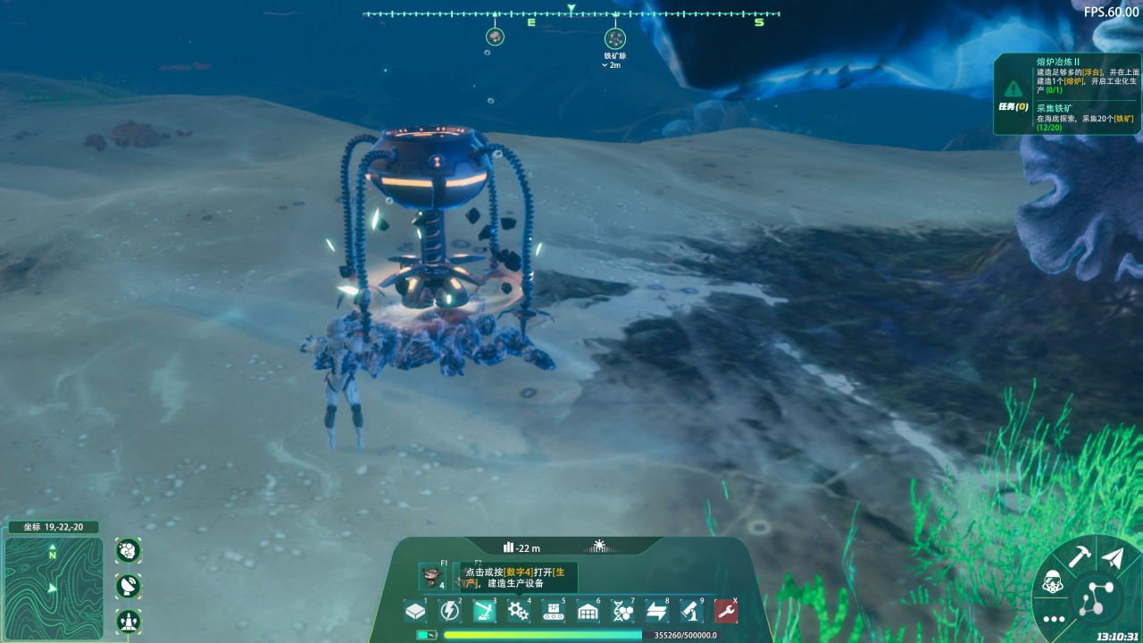 我刚上手《深海工厂》的时候,其实对游戏里的大部分系统都完全陌生。一开始的基础船舱特别小,水面上几乎什么都做不了。 等下到深海之后,地图里才有各种矿物和可互动的东西。这时候游戏会在右上角给出任务指引,前期就是让你先收集各种资源,然后合成对应的工具。从搭建平台,到在水面上建立工厂,整个过程都是跟着任务一步步走的。