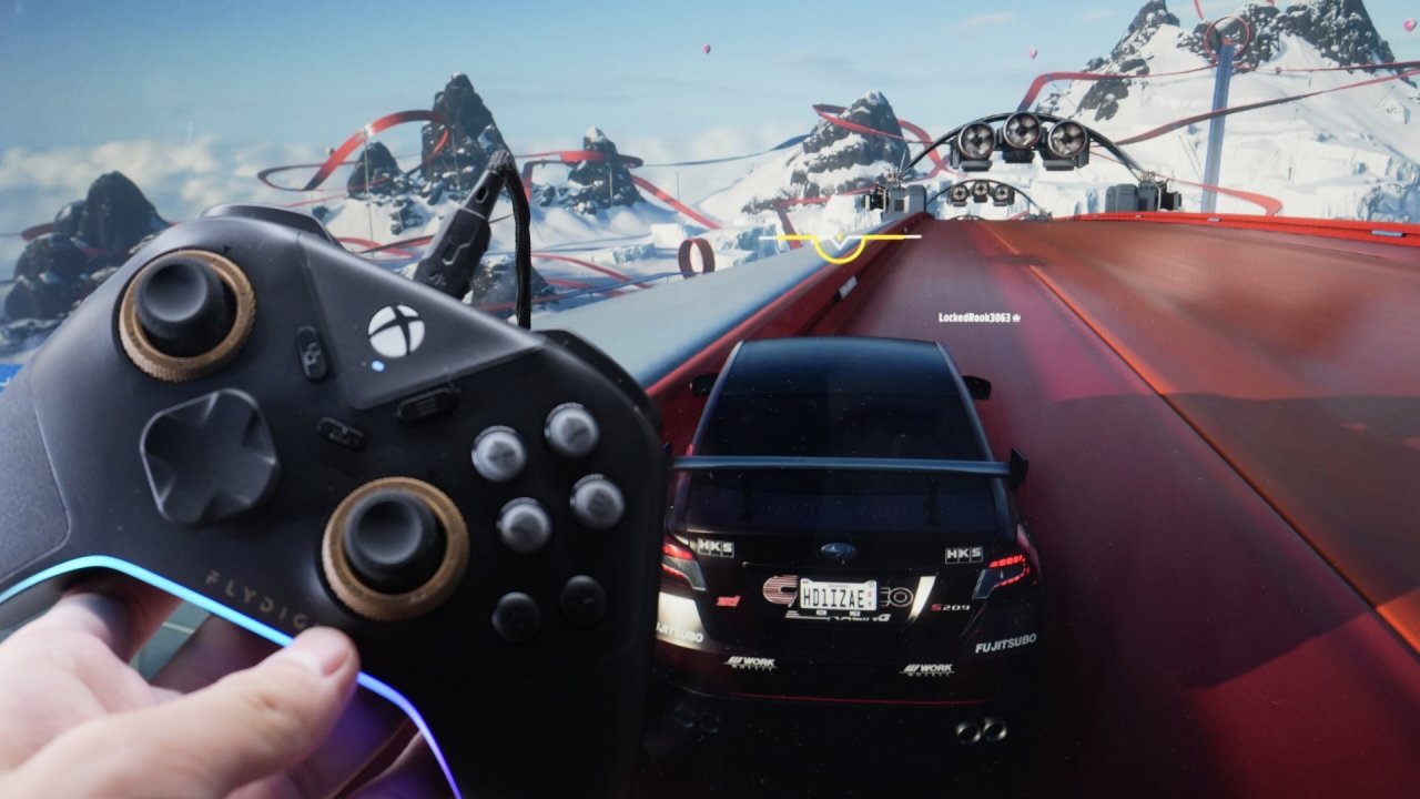 在不开启的状态,他就是一个正常的256级霍尔线性扳机,有着9mm的键程,这就导致你如果玩的地平线5这类开车游戏,他的阻尼感其实是比较强的。而在开启的状况下,它的键程就会从9mm缩短为0.7mm,我记得前代是4mm吧。升级还蛮大的,整体的手感你可以参考鼠标,就非常适合用来玩FPS游戏,毕竟这样子开枪会更快一些嘛,非常爽脆