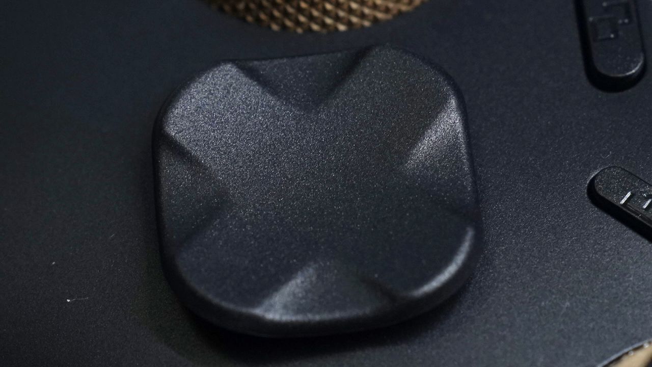 在按键方面黑武士5也有说更改,就比如这个方向键。从前代的圆盘变成了棱形内凹的八向十字键,,打格斗游戏更好搓招,定位更加准确了一些。配置和前代一样,内部是轻触开关,寿命同样达到了数百万次,上面有一层进口硅胶垫,手感清脆