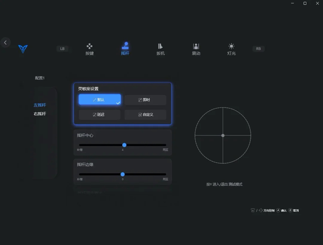 如果你观察仔细,你能发现ABXY键下方还有两颗按键:C和Z。这玩意儿其实最开始从前代黑武士3就已经有过了,但可能有些观众不熟嘛,我这边就再说一次:这俩就是单独采用了微动 。至于你想问他有什么用,就是两个单独的按键罢了,可以对手柄进行一个拓展,不过因为官方授权的原因,只能按键映射不能设置宏了