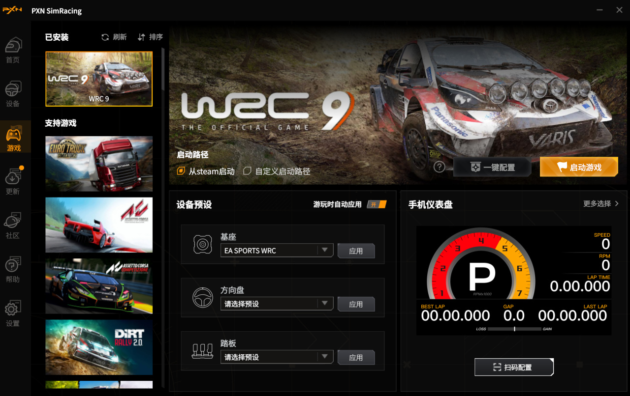 当然,软件里面也有适配各种游戏的预制参数,能够让你快速上手成为赛车高手。