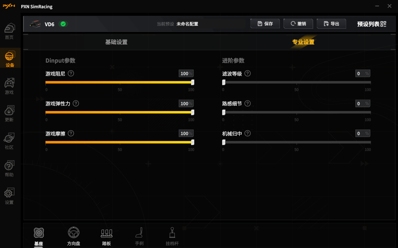 有很多人就说,为啥在方向盘,你能感觉到一种你操控不了的力,这种力,就是阻尼,你也能够在软件里面调节,拉满与调低,完全看你在赛车开车的操作习惯。