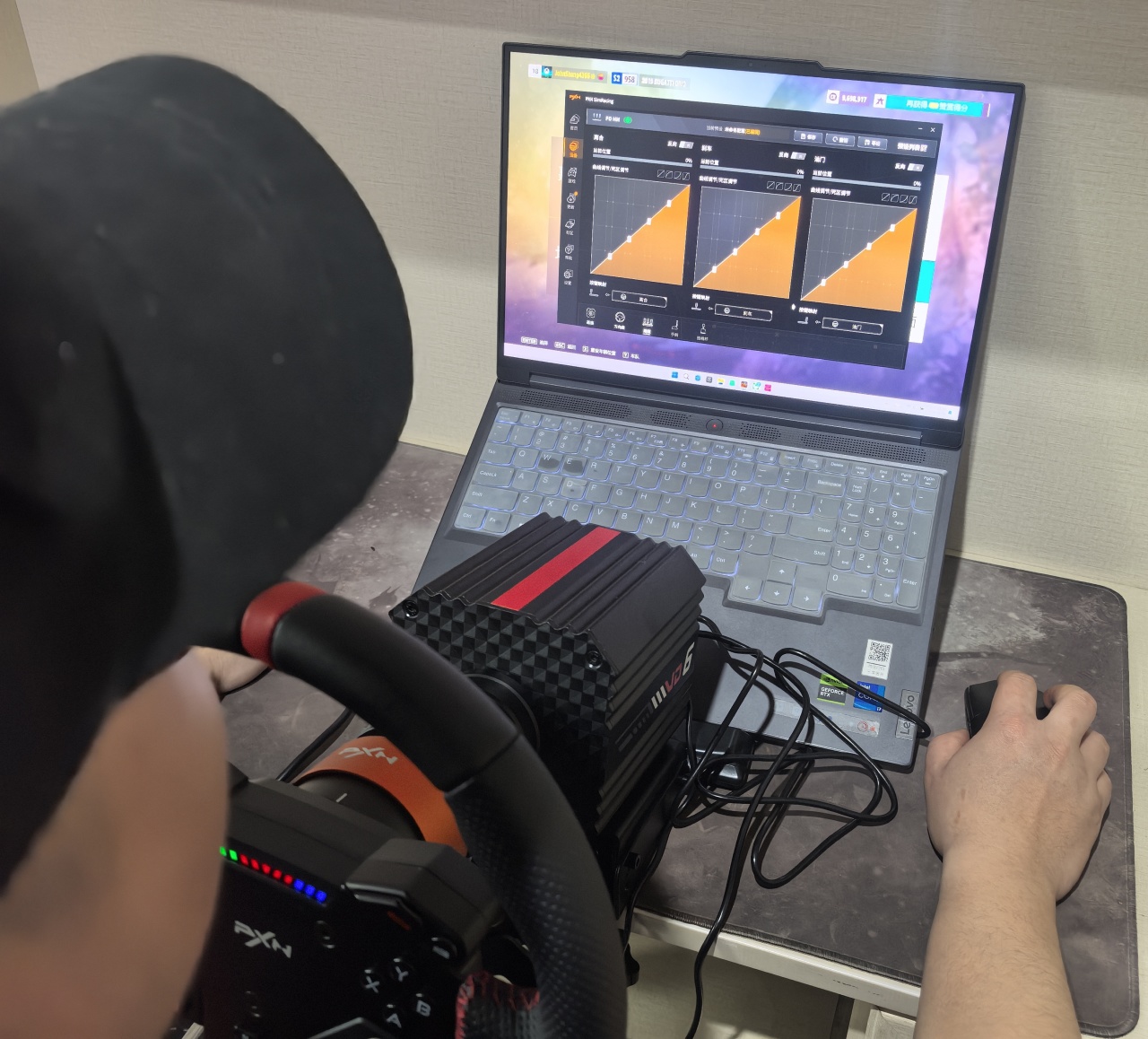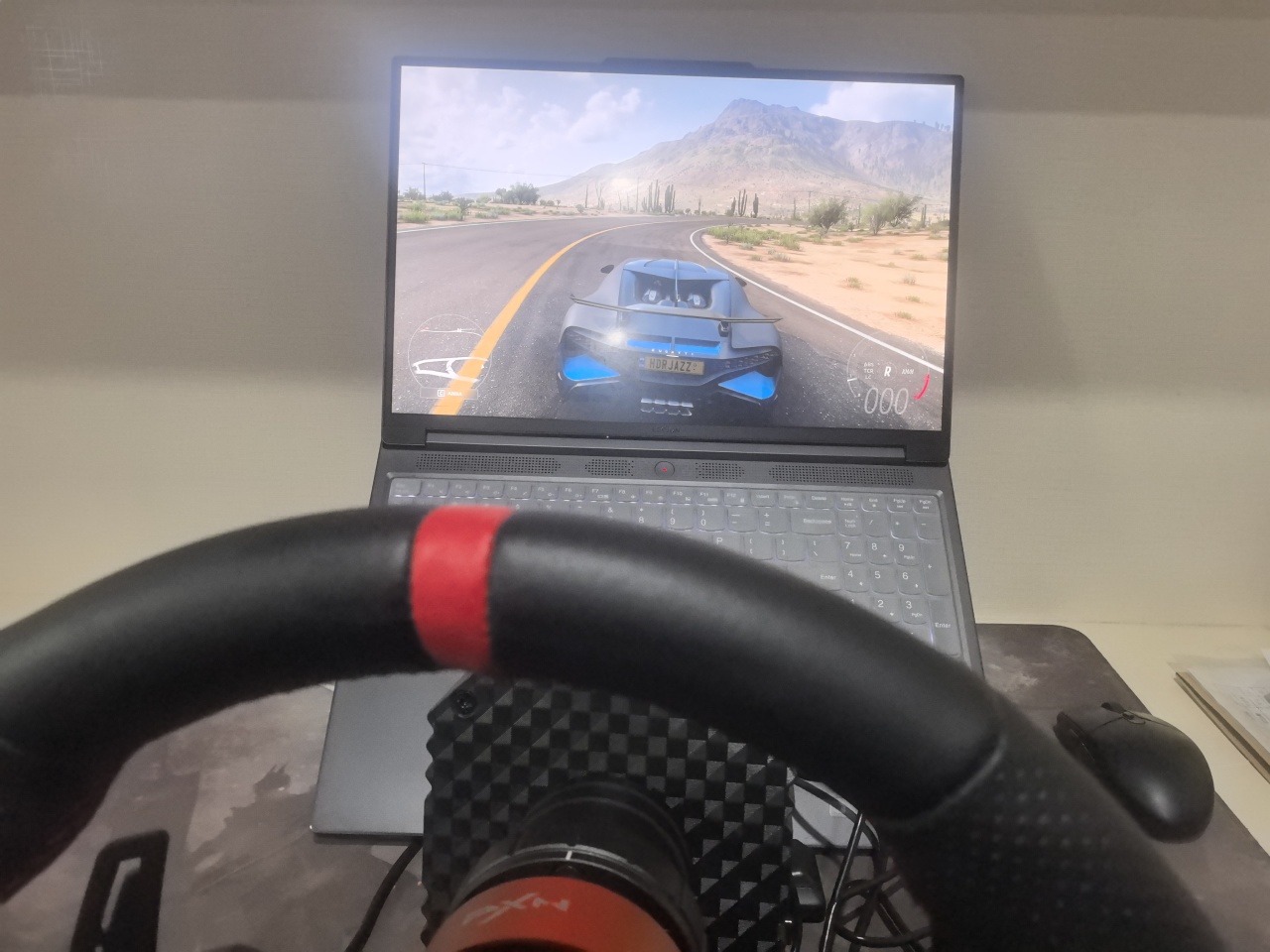 这款方向盘非常适配这款游戏,开车的反馈足够及时,同时方向盘基座的稳定性也足够坚固,操作也顺滑。