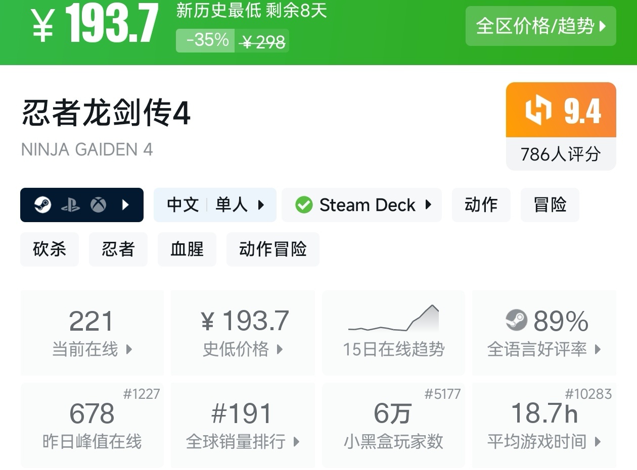 1.《忍者龙剑传4》