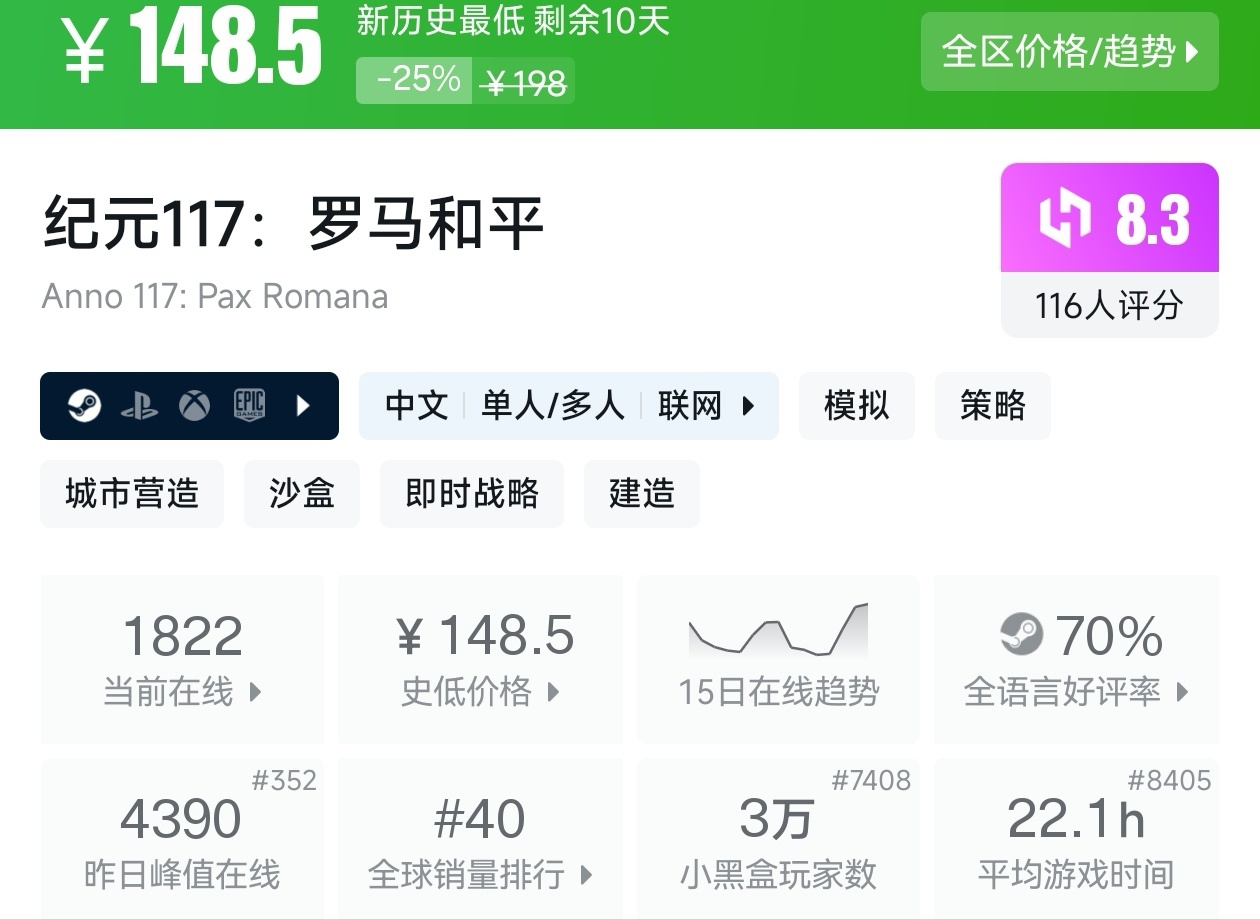 大家好,没错,又是我,你们的老朋友亦然,在最近,Steam又有很多游戏都迎来了折扣,不仅有很多大作,还有很多精品小游戏,其中就有很多新史低游戏,其实新史低的游戏买起来最有安全感,因为在很长一段时间都不会更低,我将为各位进行一个汇总,希望我的汇总,能够帮助各位盒友挑选心仪的游戏。