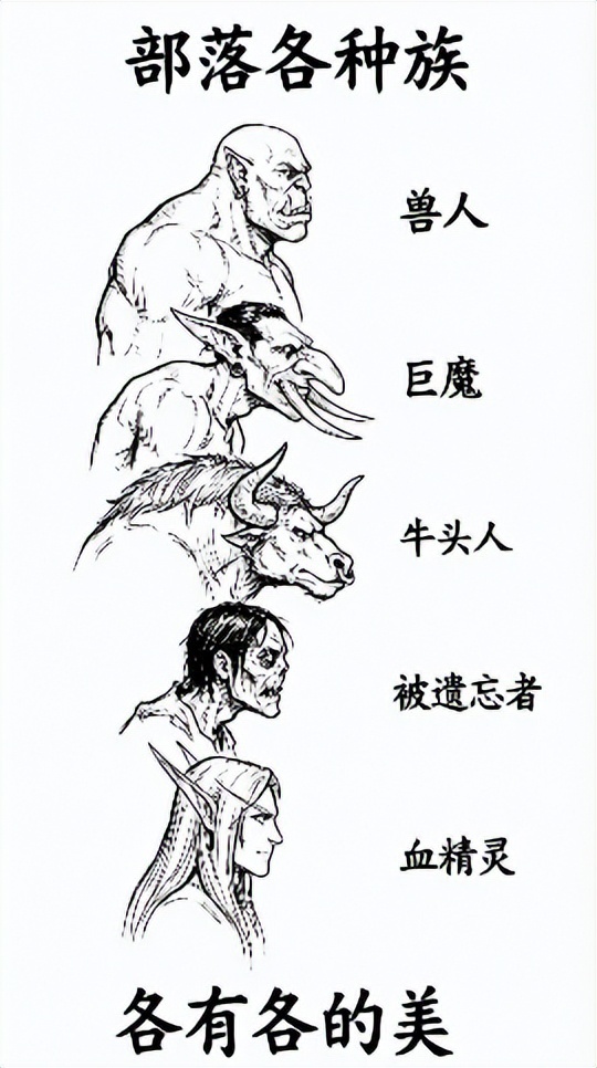 比如和前面的“废公画像”长得极为相似的《魔兽世界》巨魔族——这么高的“山根”,一看就是“废公”的亲族,而且连“网络巨魔”这个属性都对应上了。