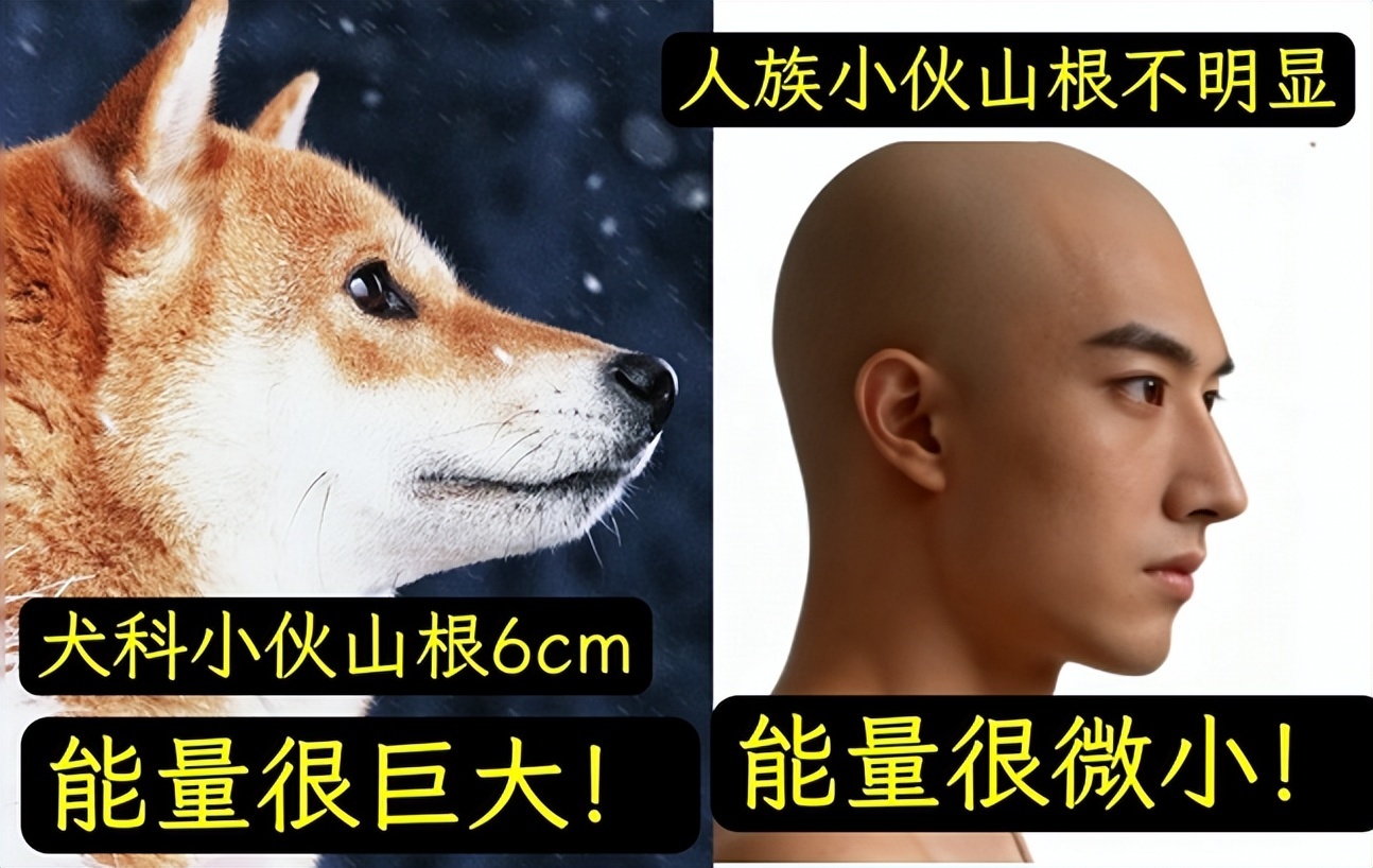 首当其冲的,是最基础的“归谬法”——既然这个写作“山根”读作“鼻梁”的东西越高越好,越高能量就越大,那我们为什么一定要拘泥于“灵长目人科智人种”呢?我看最普通的犬科小伙“山根”都能有数厘米之高,能量肯定大于人科小伙。