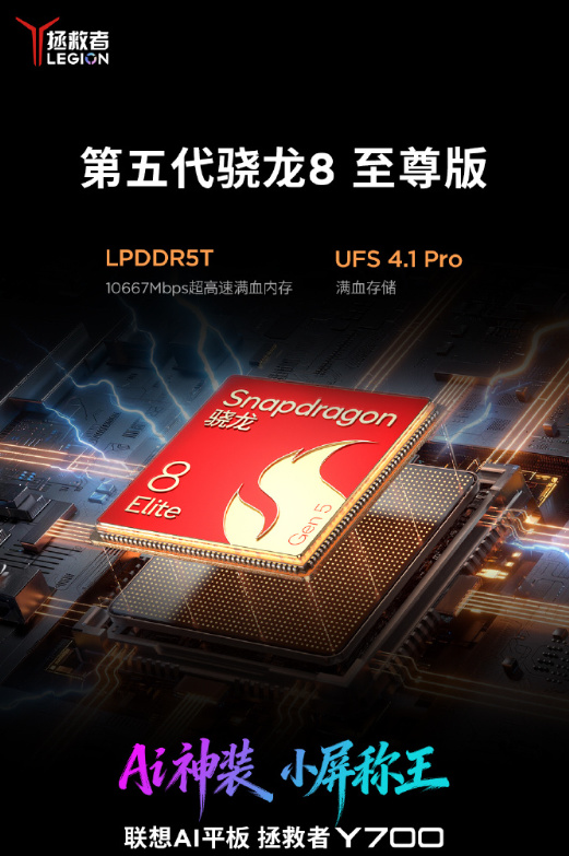 今日,联想拯救者官微宣布全新Y700搭载第五代骁龙8至尊版芯片(骁龙8E5),这是目前安卓阵营最强芯片,Y700也成为首款搭载该芯片的小尺寸平板。