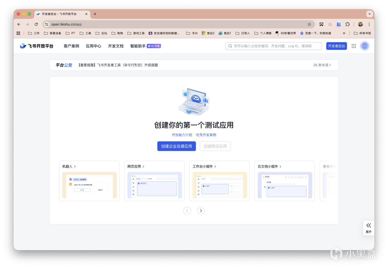 首先是打开飞书开放平台,需要我们创建一个应用。