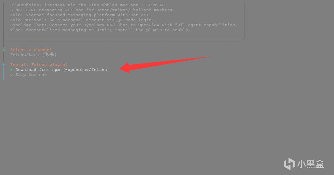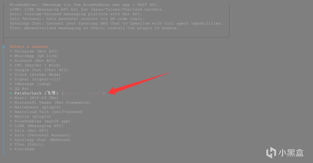 移动上下方向键,选择飞书并回车。