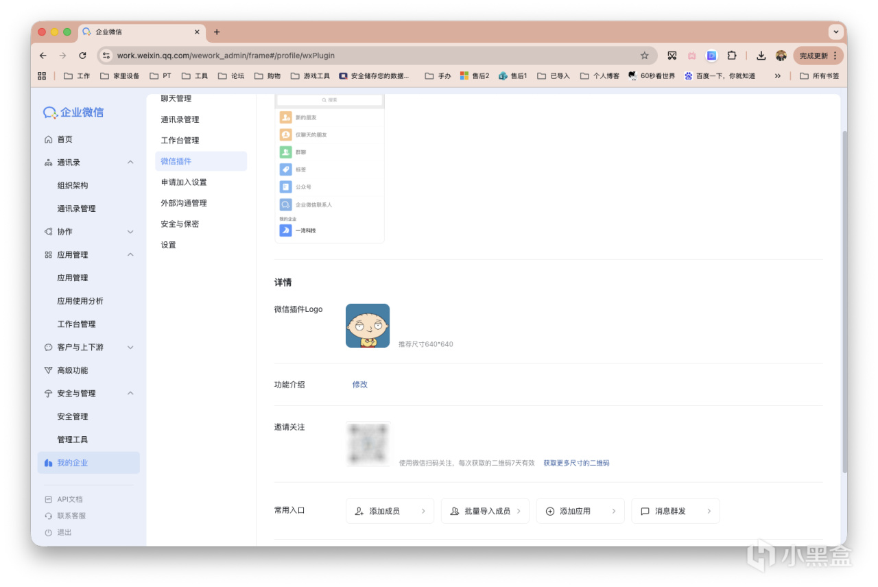 最后!!!「我的企业」-「微信插件」,分享二维码邀请关注,就可以对话了。