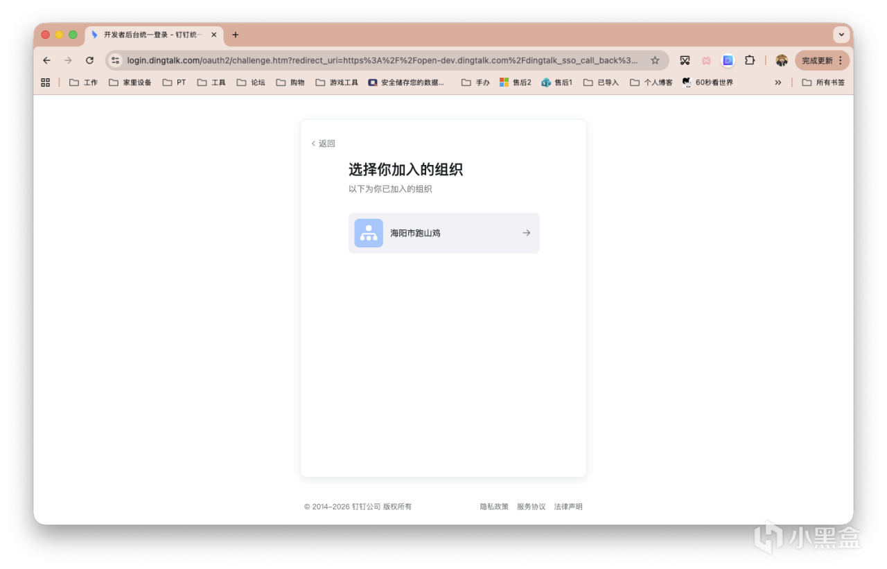 创建完毕后,打开钉钉开放平台,登录后,选择刚刚创建的企业。