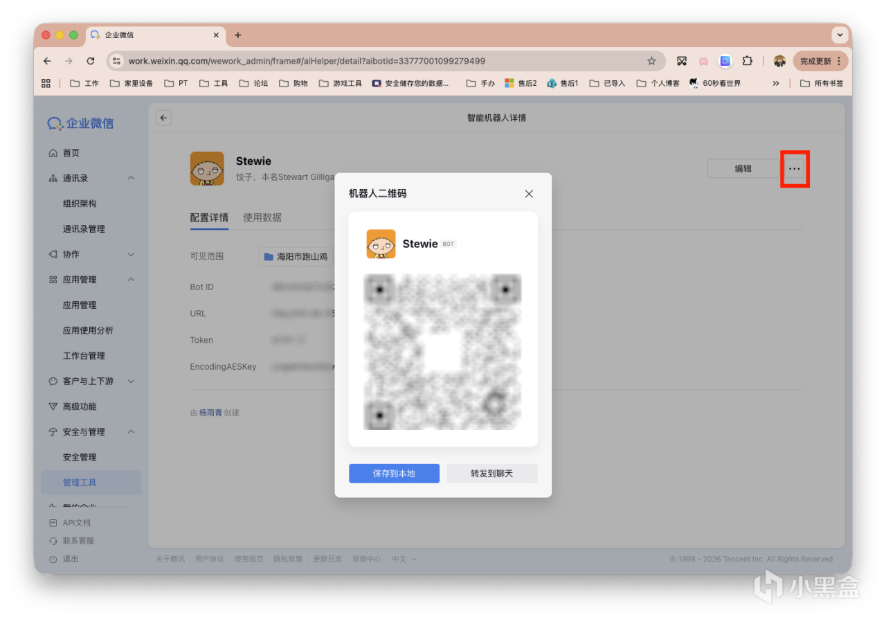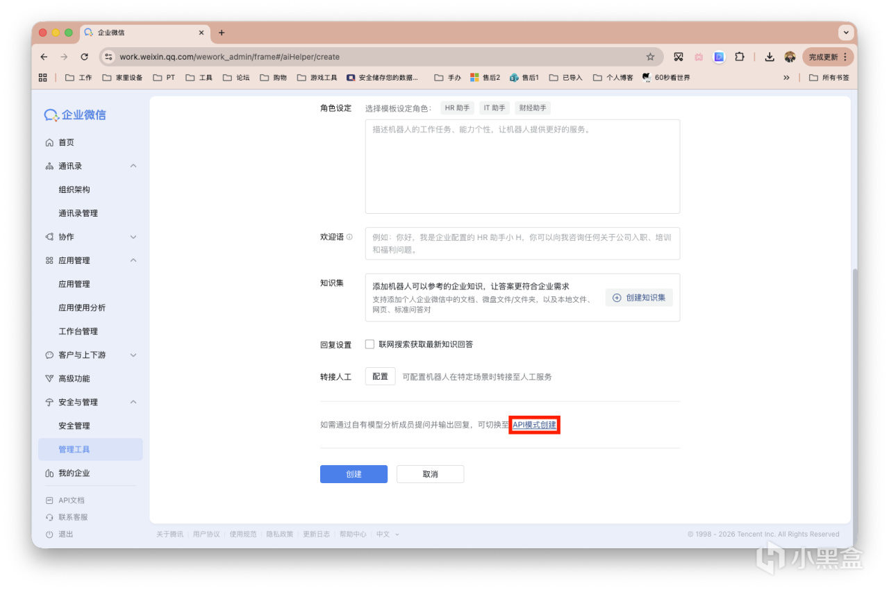 还是企业微信WEB端。「安全与管理」-「管理工具」-「智能机器人」。
