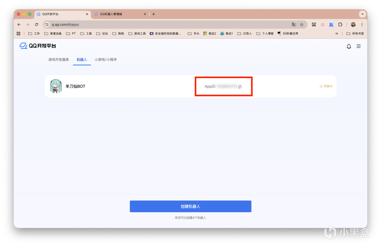首先去QQ开放平台,要创建个机器人。该机器人是腾讯官方BOT,跟我之前写的那个用独立QQ号接入机器人不一样,另外将个人QQ作为机器人接入,风控得相当厉害,我已经做过很多次尝试~当然微信端也类似,都建议使用企业微信接入供日常使用。