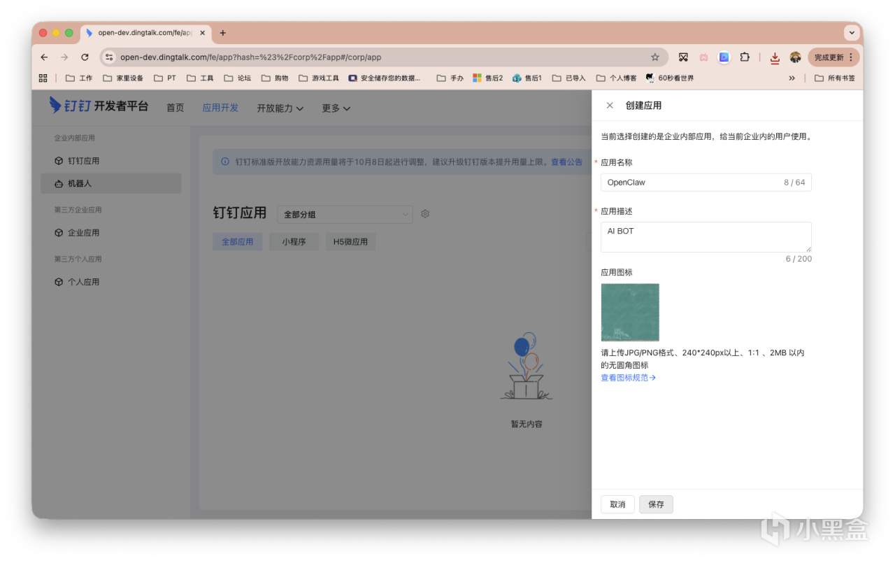 创建应用,填写好信息并保存。