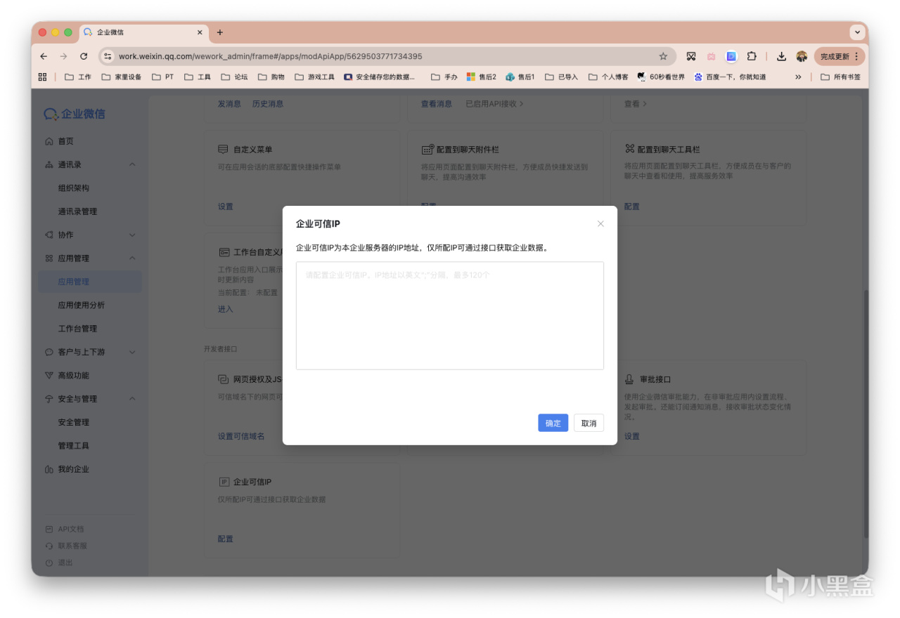 接着,再回到「应用管理」,点击添加「企业可信IP」,填写你部署设备的公网IP并保存。