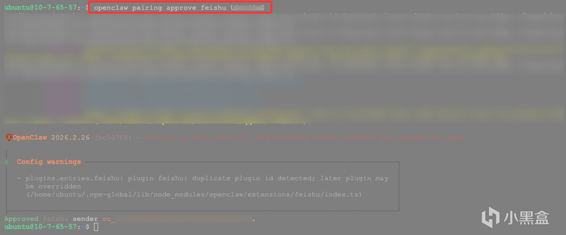 openclaw pairing approve feishu <配对码>