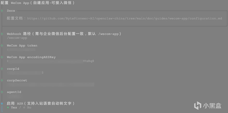 到了这一步,再回到ubuntu的控制台,开始填写各种ID、Secret~。后续还有个,开启语音转文本(ASR),直接否,如果有需要请自行开启。