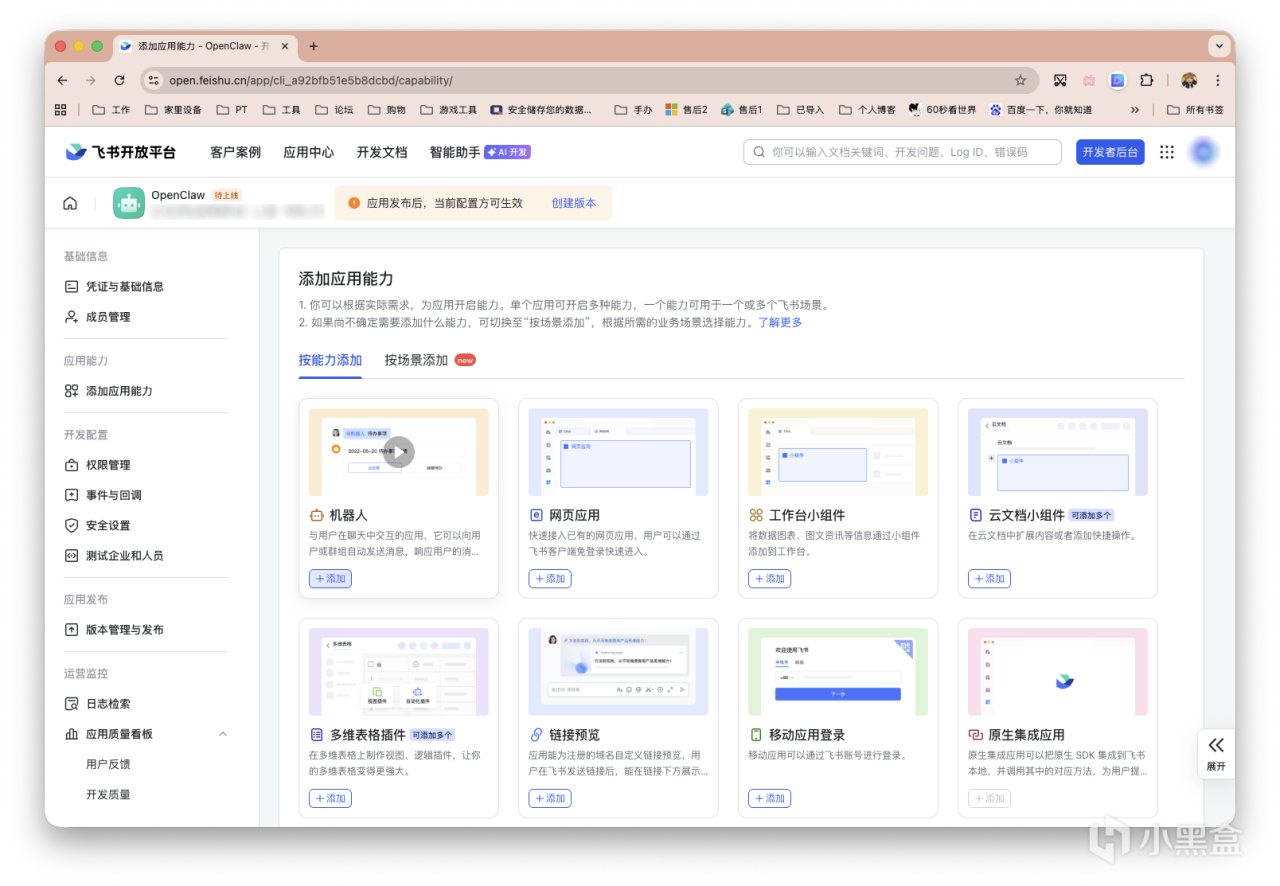 添加应用能力,我们点击第一个机器人所在的添加。
