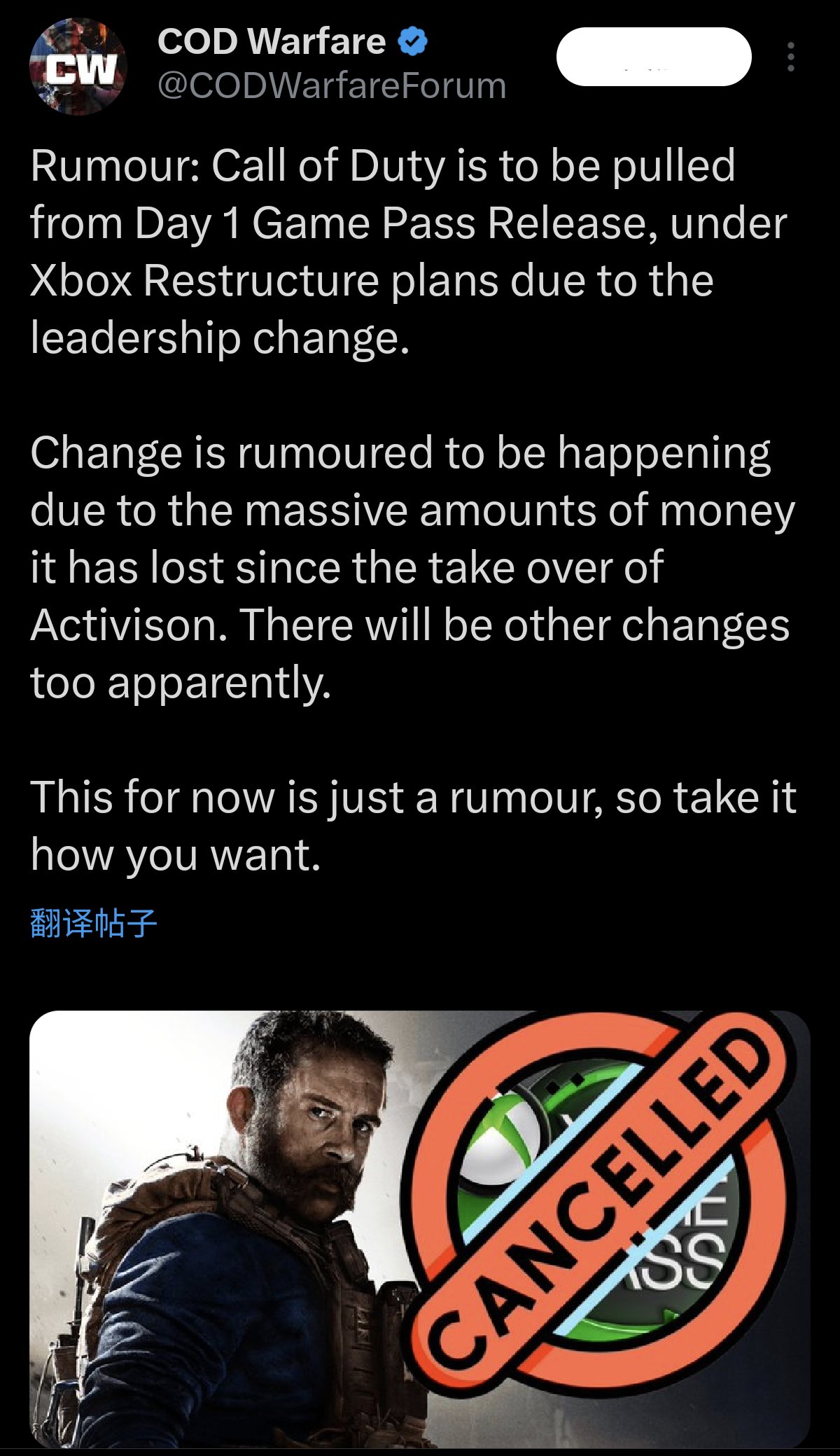 由于领导层变动,微软游戏新CEO计划将《使命召唤》从第一方首发Game Pass游戏中移除。
