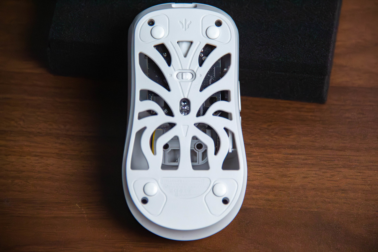 底部做了镂空设计,进一步减重。但是底壳用的是塑料,倒也可以理解。
