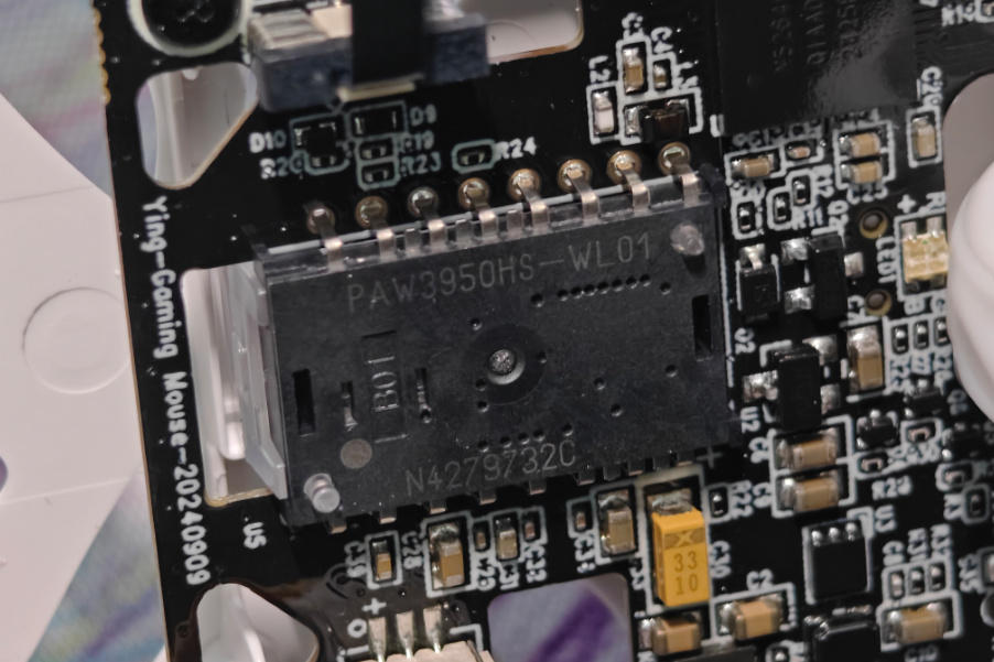 传感器用的是旗舰级的PAW3950HS,这个“HS”代表高速版。