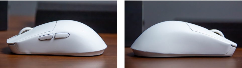 把掩盖部分做了凹面,盛放手指防滑,发力也方便。我就挺喜欢这种设计鼠标的,而不是一个大直盖下去。