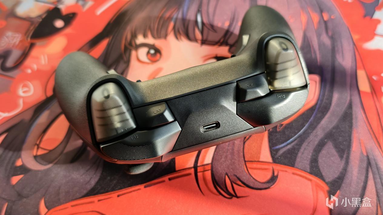 手柄背部和黑武士5Pro相比就简单很多了,只有两颗采用轻触开关的固定背键和切换扳机模式的拨杆,虽然少了两个可拆卸的背键,但加上两颗拓展小肩键和“CZ”键,总共六颗拓展按键绝对够用了。需要注意的是因为是有线手柄,所以没有磁吸接口和模式切换拨杆,当然也取消掉了隐藏式支架。
