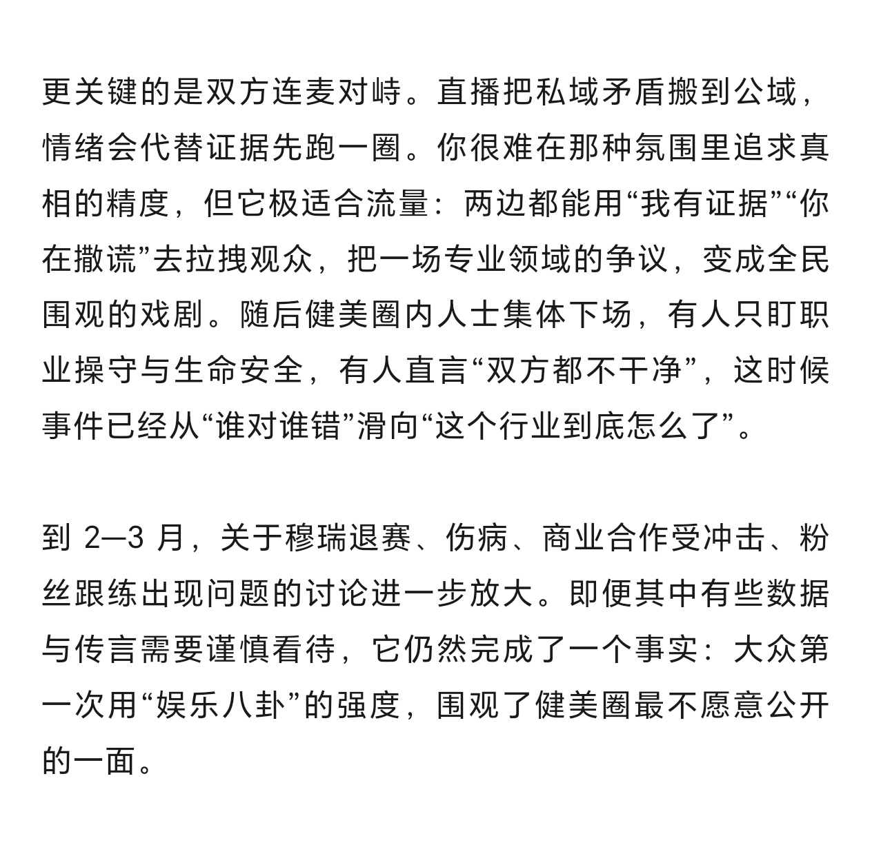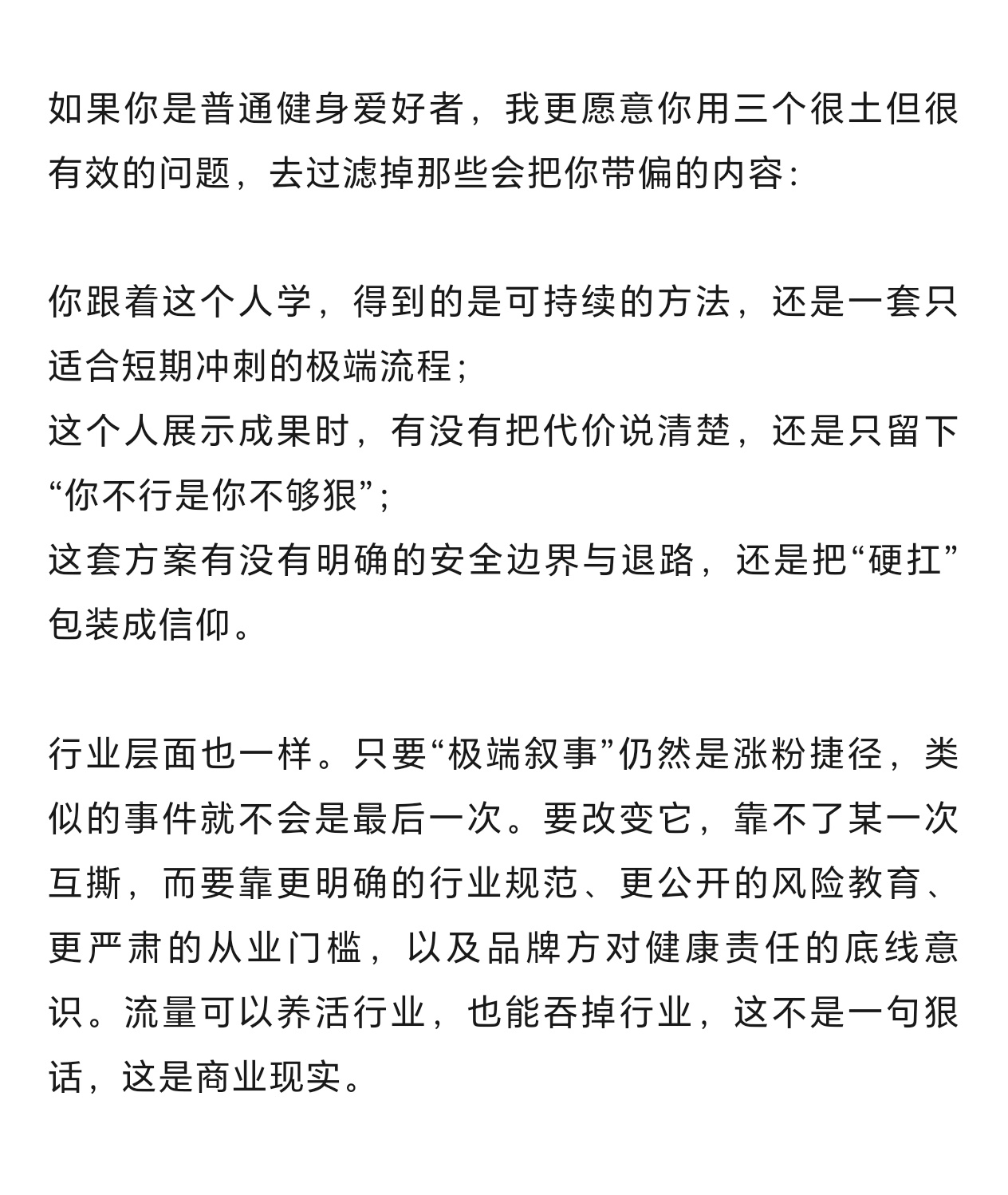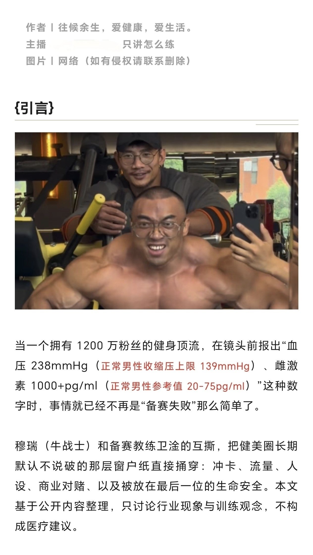 本文仅借此事件客观阐述事实,讨论大众健康与科学健身问题,不作任何恶意引导与人身攻击。如内容涉及侵权,请联系作者及时删除,感谢理解与配合。