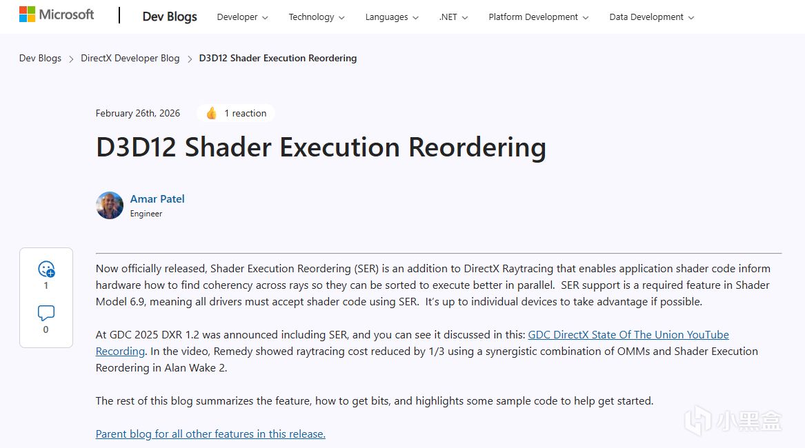 微软正式发布着色器执行重排序(Shader Execution Reordering,简称 SER) 功能。作为 DirectX 光线追踪(DXR)的重磅新增能力,SER 现已纳入着色器模型 6.9(Shader Model 6.9)的强制要求,所有符合标准的驱动必须支持搭载 SER 的着色器代码,