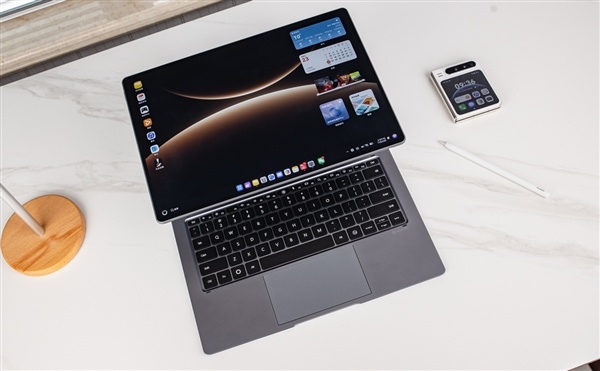 在平板模式下,它是一款拥有14.2英寸OLED屏幕的巨幕平板,完整适配全量鸿蒙平板应用,搭配手写笔可进行笔记记录、手绘创作等;切换至电脑模式后拥有桌面化的UI、窗口化多任务操作,辅以全新星跃悬浮键盘可完美使用WPS、剪映专业版、中望CAD等桌面级应用,满足复杂文档处理与专业创作需求。