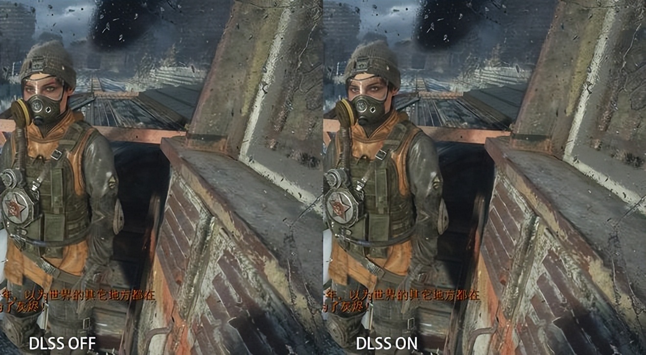《地铁:离去》增强版是一款以画质为主打的3A游戏大作,通过大量的运用光线追踪令画面达到了当今游戏的新高度。DLSS开启前后的画面对比如果不是特意进行了标注,相信很多玩家都无法分辨,只能感受到游戏流畅度的显著提升。