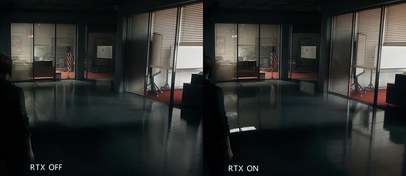 《Control》是EPIC的一款3A级大作,并且完整支持RTX实时光追和DLSS黑科技。在开启RTX技术后镜面反射更加真实,且地面能反射出墙壁的真实倒影,环境中的阴影更加柔和,本影和伪影叠加出现在了物体的边缘,和现实光照下的样子几乎一样。