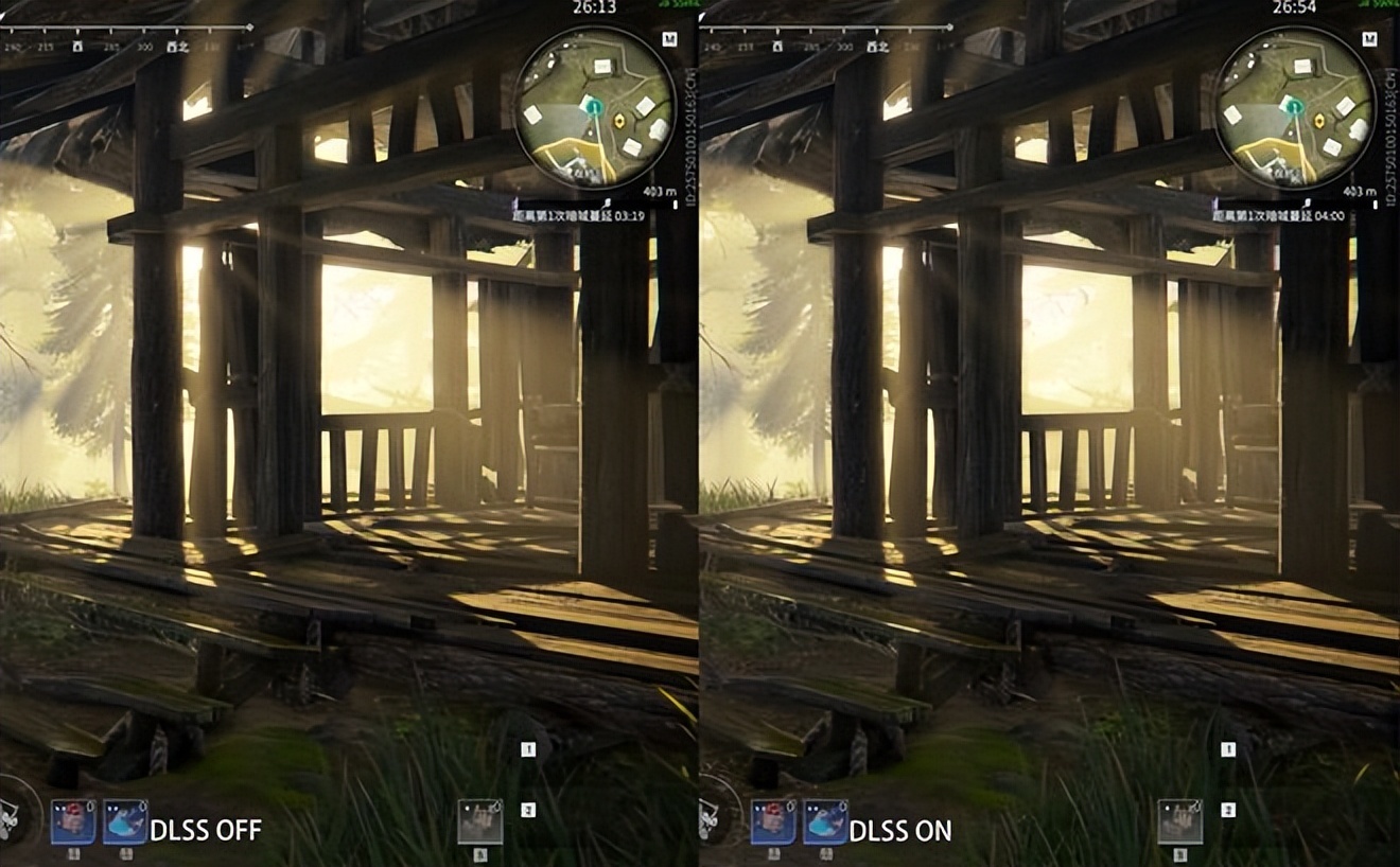 DLSS开启能够得到肉眼可见的帧数上升,通过对比画面很难看出DLSS功能带来的画质欠缺,可见DLSS是一项为玩家带来实打实福利的黑科技。