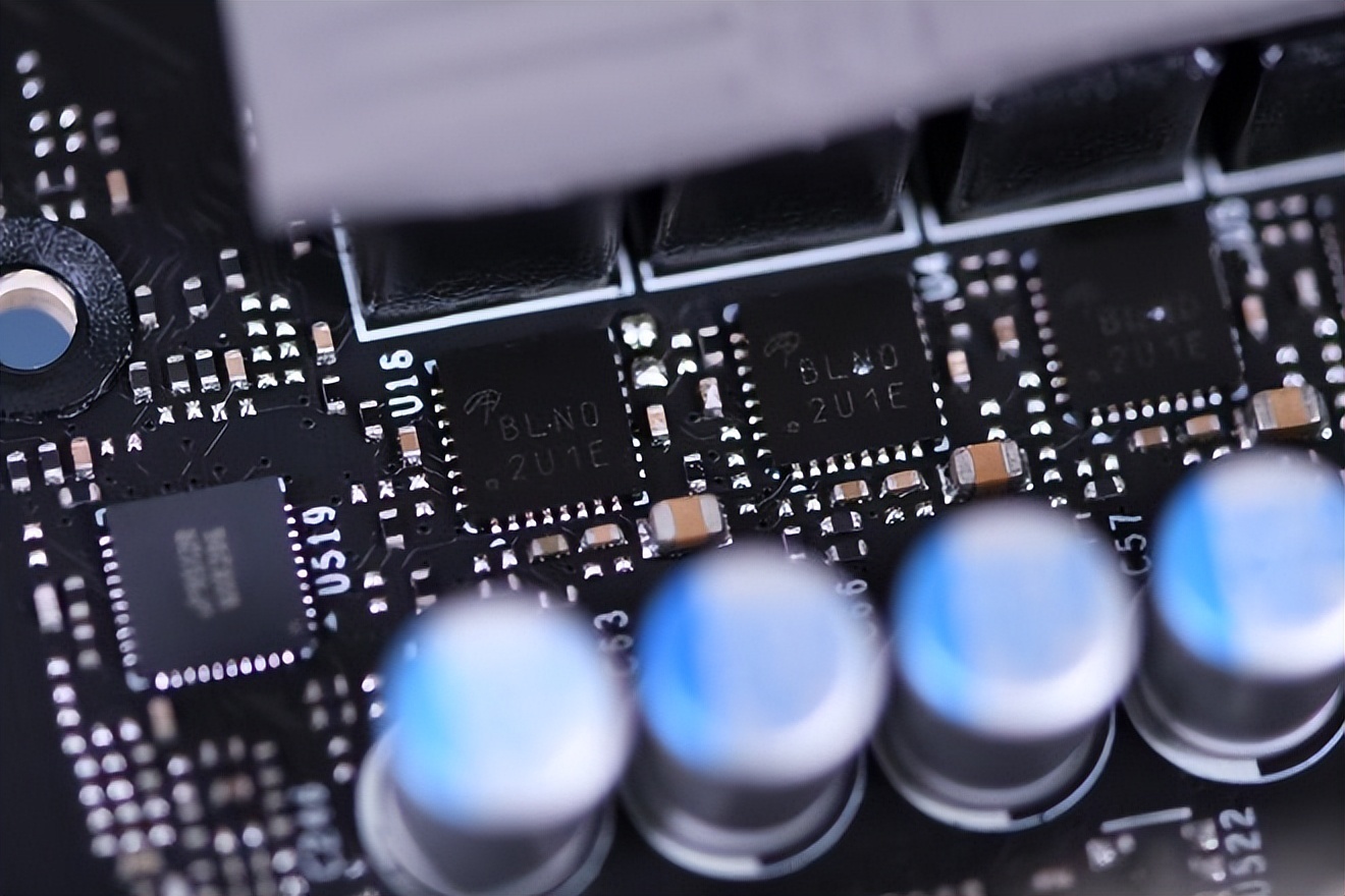 GA104-202-A1的核心供电为8相,位于核心左侧,使用单颗可通过高达50A电流的DrMOS,提供最大400A的电流支持,为GA104核心在高负载下的稳定运行打下良好基础。显存供电为2相设计,位于显卡中部,DrMOS管区别于核心供电,最大通过电流60A,提供120A电流输出。