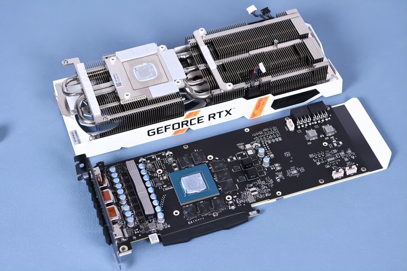 8颗来自镁光的GDDR6X显存紧密的环绕在GPU核心周围,组成256bit位宽8GB容量的规格,频率大幅度超过原GDDR6显存版达到19GHz,有效带宽从448GB/S提升至608GB/S。