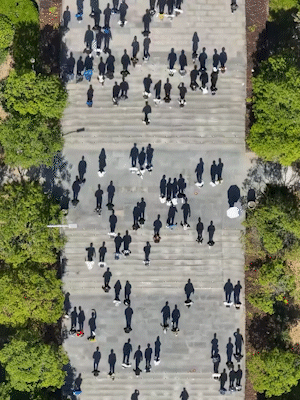 第一眼都以为大家踩着云彩在走,看了半天才发现黑色的是影子啊!